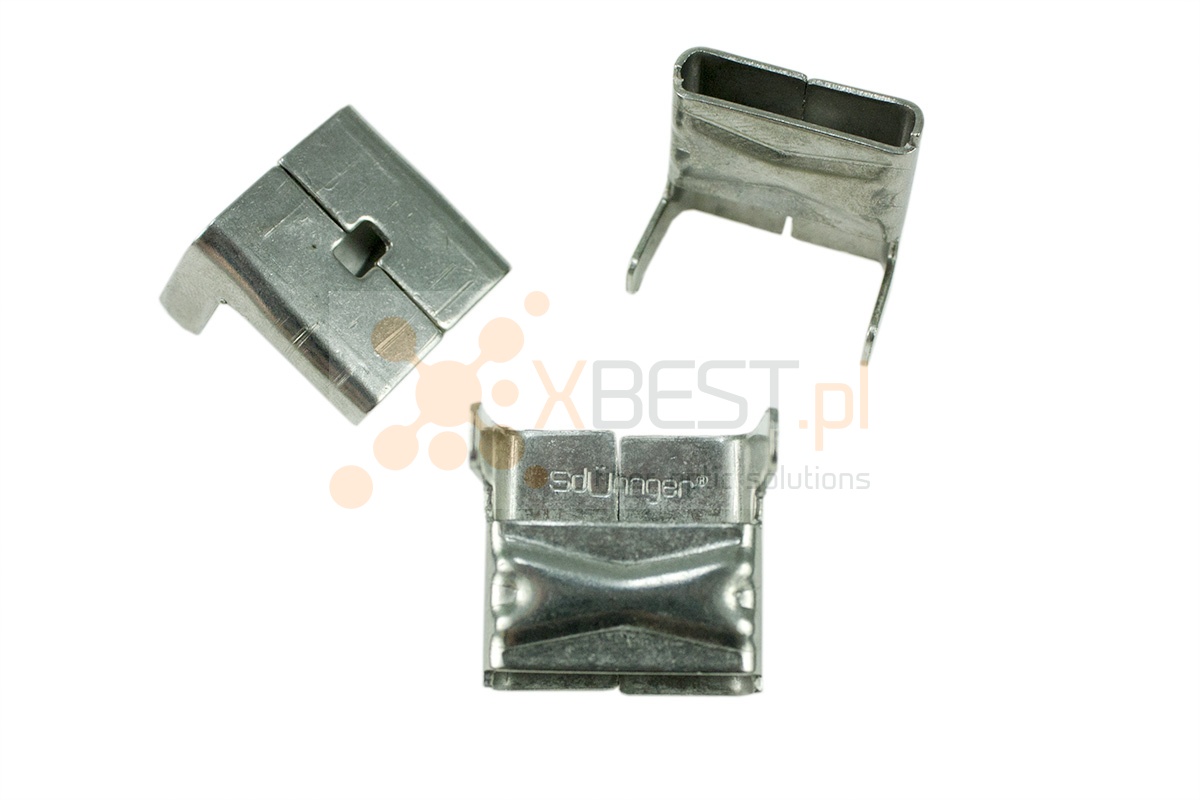 Sprzączka - klamerka/spinka do taśmy stalowej Sdünnger A 200 (20mm) typ L, Stainless Steel 304 - Spinka ze stali nierdzewnej do wykonywania opasek mocujących wsporniki na słupach napowietrznych linii telekomunikacyjnych.