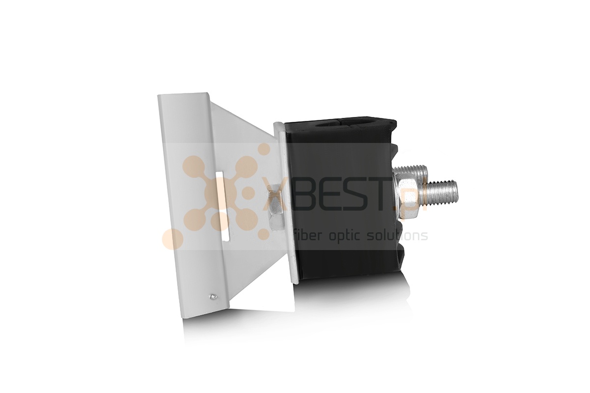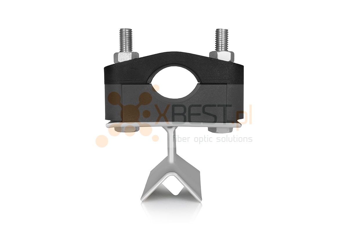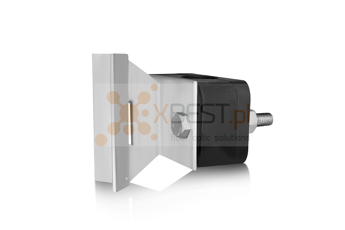 Uchwyt kabli / rur KO fi 40 [mm] na słup wirowany, na stopie kątowej, pojedynczy. Wykonany z wysokiej jakości stali ocynkowanej i tworzywa sztucznego. Odporny na szkodliwe warunki atmosferyczne. Możliwość szybkiej i prostej instalacji za pomocą taśmy stalowej o szerokości 20 [mm].